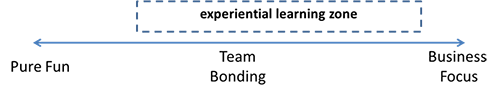 Typically there are three main areas of team building that suit different business objectives and outcomes. These three areas are Pure Fun, Team Bonding and Business Focus. To help determine which of these may be suitable for your next event, the following question can be of great help “What is our required outcome? Are we looking for pure fun or would we like to see a change in behaviour?” This can be represented by the following continuum.