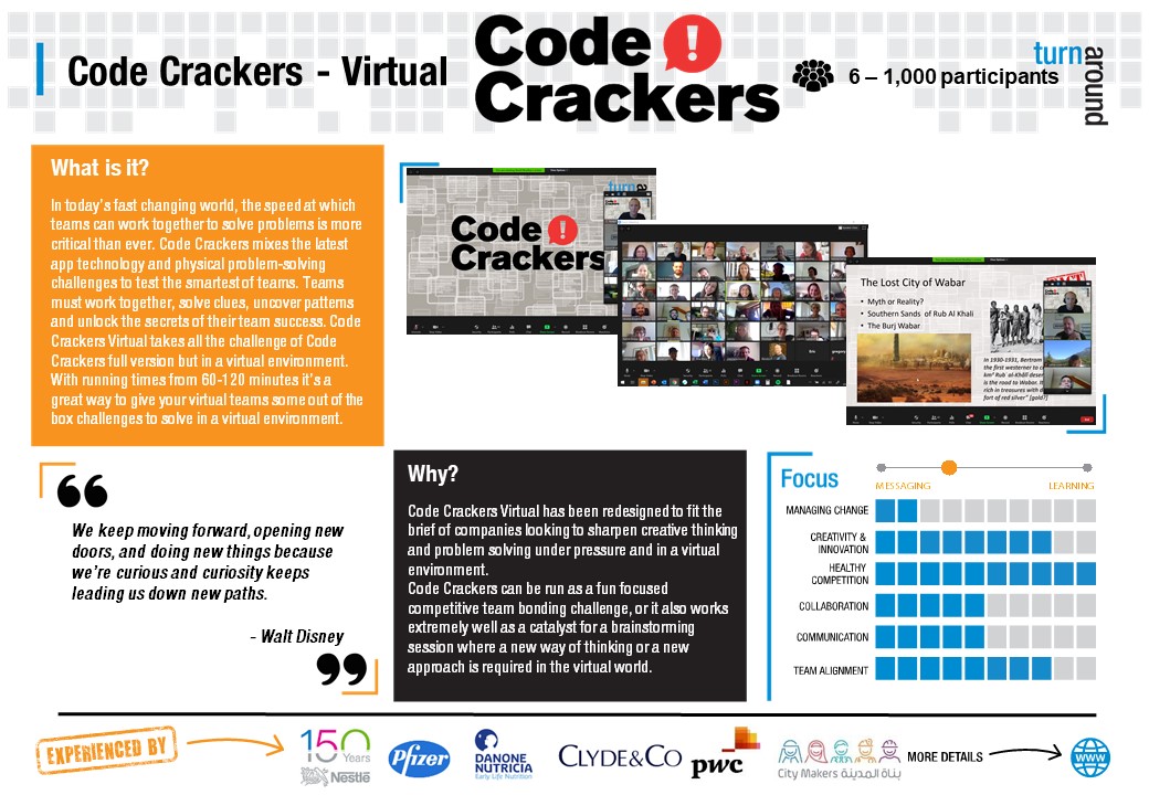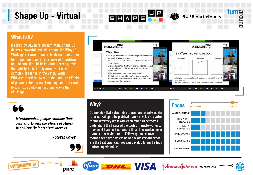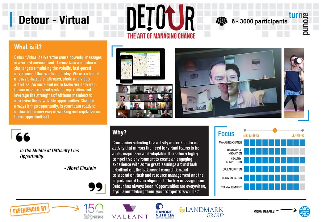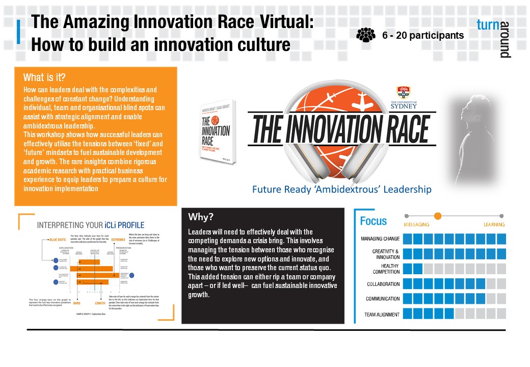 Whether you are just looking for virtual or social distance friendly team building activities, or whether you are ready to prepare and develop your team to join 'The Innovation Race', Turnaround has a suite of virtual team building programs to support.